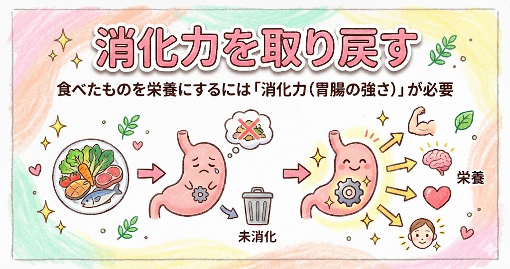 食事を変える前に、まずは「消化できる胃」を作りましょう。